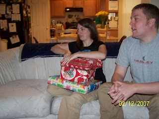 Well here is our second Christmas for reasons we won't mention here ;o). Just kidding checking to see if you really read what I write....They went to Hollie's family this year. So the day after Christmas we went to TJ and Hollie's and had a yummy dinner....which we did not take any pictures of. So here is Hollie opening her presents...